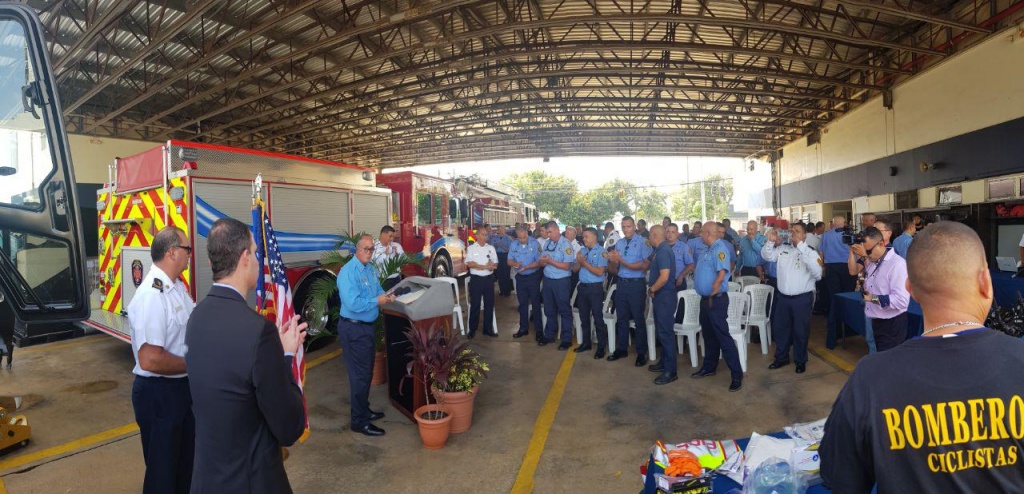 Durante la entrega, en la que participó el subsecretario del Departamento de Seguridad Pública (DSP) y comisionado del Negociado del Cuerpo de Emergencias Médicas, Guillermo Torruella, también se entregó una excavadora valorada en 129,391 dólares para asistir en incendios y emergencias de grandes proporciones.