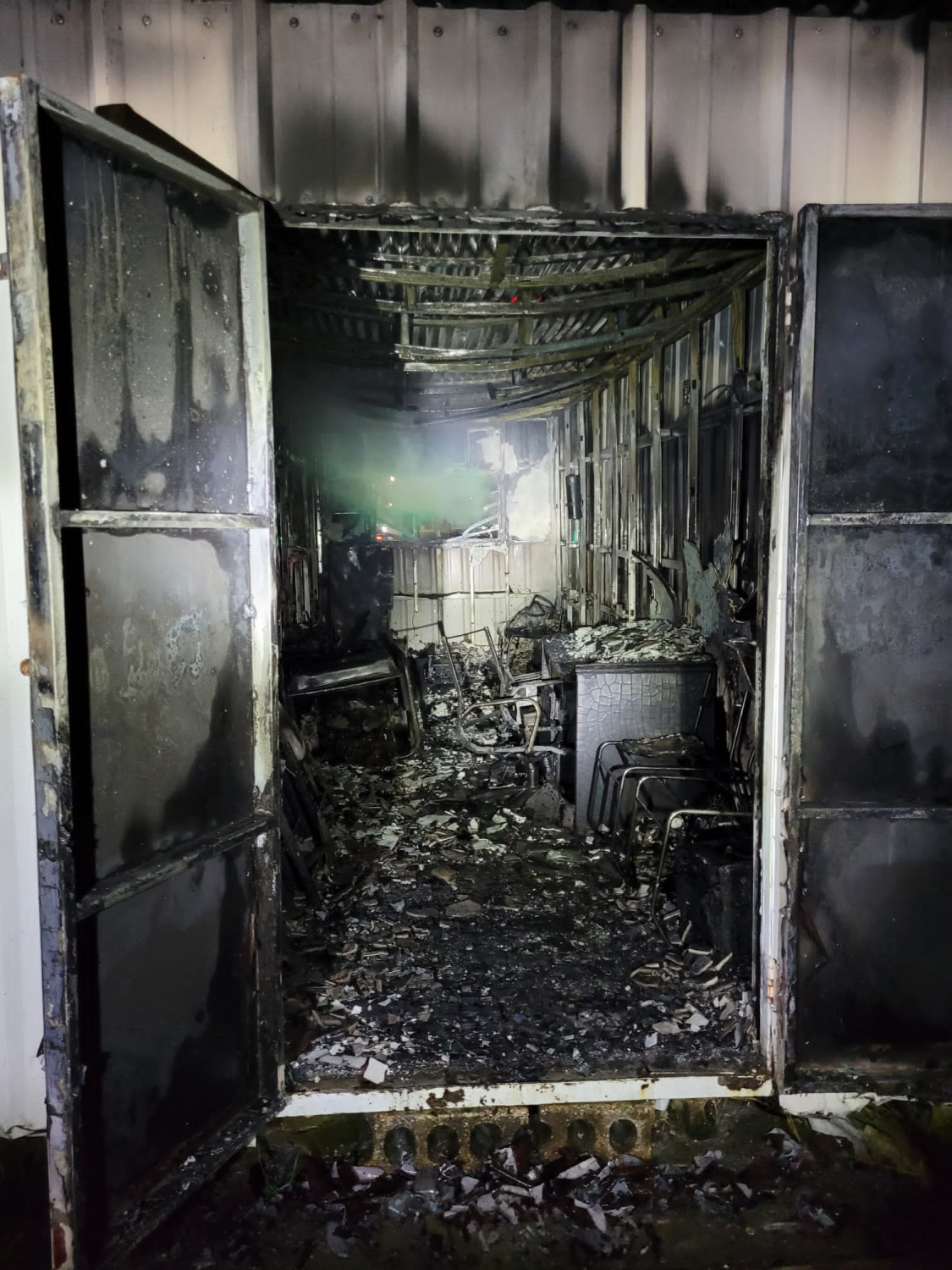 Incendio en un kiosco de venta de sellos y comprobantes para licencias en Arecibo
