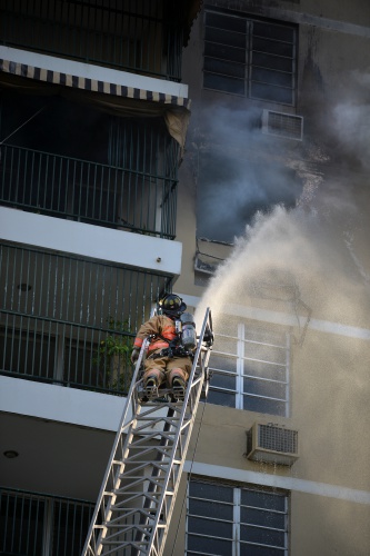 "La pronta intervención de los bomberos de Puerto Nuevo, Guaynabo, Estación Metropolitana, División de Operaciones Especiales (DOE) de Hato Rey, así como unidades de las Oficinas de Manejo de Emergencias de los municipios de San Juan y Guaynabo, se pudo extinguir el incendio con rapidez, evitando que se propagara a otros apartamentos ", dijo el jefe del Cuerpo de Bomberos de Puerto Rico, Ángel A Crespo Ortiz, quien supervisó personalmente las labores de extinción donde hubo que utilizar un camión escalera.