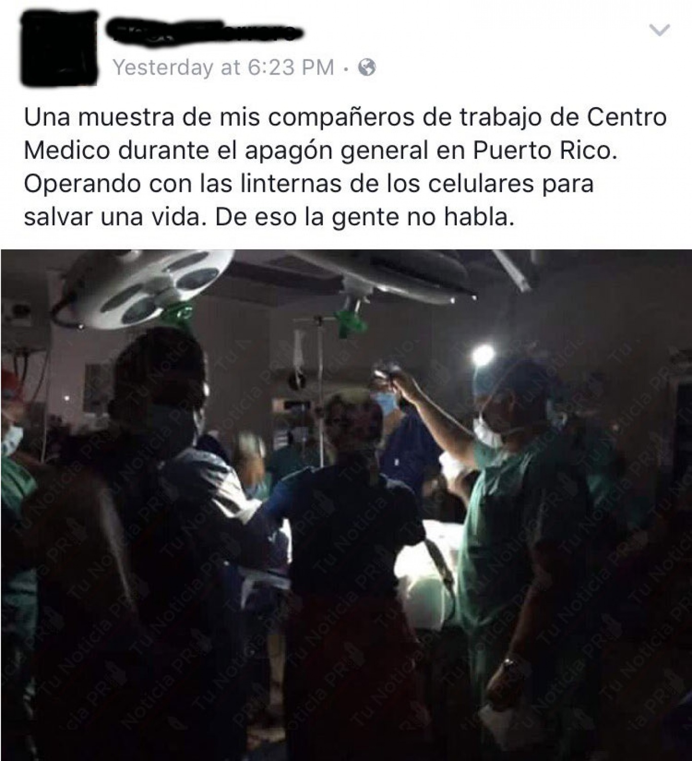Publican foto de médicos en el Centro Medico operando con linternas en el momento del Apagón