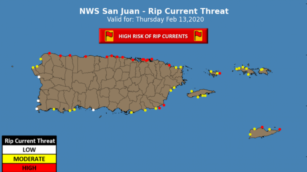 Las condiciones marítimas prevalecen deterioradas, aunque el oleaje ha aumentado aún más. Espere olas de hasta 8 pies en las aguas del Caribe y de hasta 10 pies en el Atlántico. Como resultado, la mayoría de las playas presentan un riesgo moderado o elevado de corrientes submarinas. Además, operadores de embarcaciones pequeñas deben ejercer cautela; estos tienen advertencia en efecto.