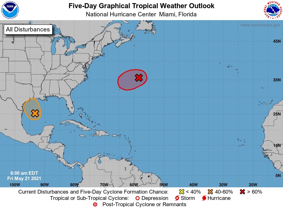 Invest 91L localizada en el Golfo de México con 40% de desarrollo ciclónico en los próximos 2-5 días.