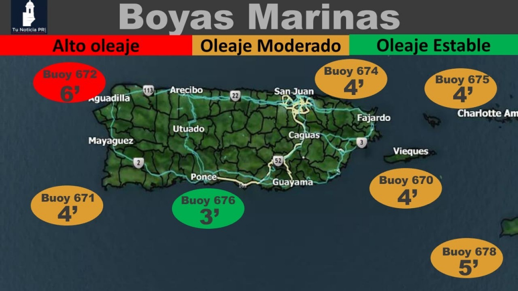 Oleaje de 3-6 pies en el atlantico y la Boya 672 marcó que hasta 6 pies de altura.