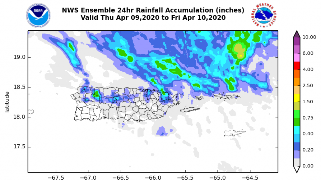 Entretanto, las condiciones marítimas reportan oleaje de 1 a 4 pies a través del Caribe y de hasta 5 pies en el Atlántico. Hay una peligrosidad moderada de corrientes submarinas solo a través de las costas del norte de P.R. y de Culebra.