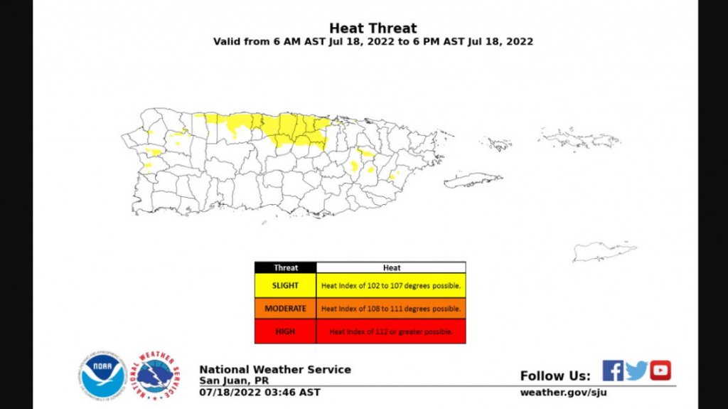 Las temperaturas máximas estarán entre los altos 80 a casi 90 grados a través de las áreas costeras. Se espera que los índices de calor más altos estén entre los 100 a 106 grados a través de los sectores del norte central de Puerto Rico. Los vientos serán del este a este-noreste, pero incrementando a 15-25 mph, con ráfagas de hasta 30 mph a mediados de mañana hacia las horas de la tarde.