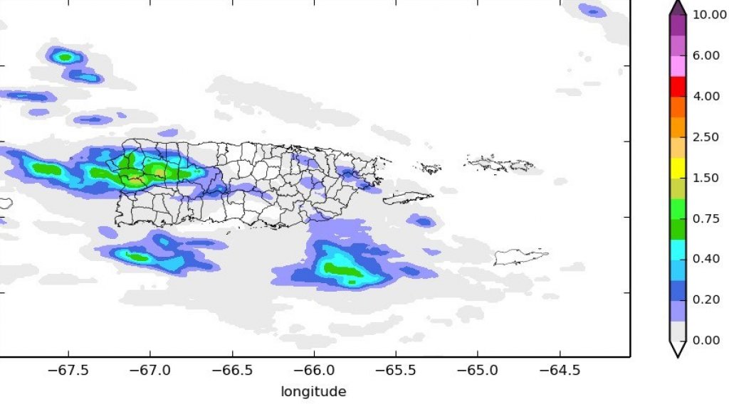 Nubosidad muy poca en nuestra área pero en la tarde podemos tener lluvias en el noroeste de la isla donde permanece ese riesgo moderado a posibles inundaciones y en el noroeste pueden caer entre 0.75”-1.00” pulgadas de lluvia en nuestra isla.