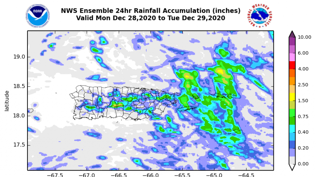 Por otro lado, las condiciones marítimas están deterioradas; manifiestan olas de 2 a 5 pies en aguas del Caribe y de 4 a 6 pies en el Atlántico. Hay un riesgo alto de corrientes submarinas en las playas del Atlántico y moderado en Vieques y Culebra. Mucha precaución en esas áreas.