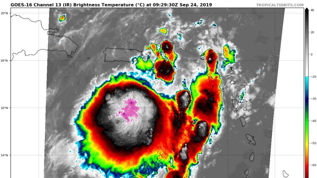 Karen ha regresado a su estado de tormenta tropical, alcanzando vientos de 40 mph nuevamente. Entretanto, la trayectoria se reajustó un poco más al este, con entrada en Maunabo (a alrededor del mediodía) y salida en Loíza.