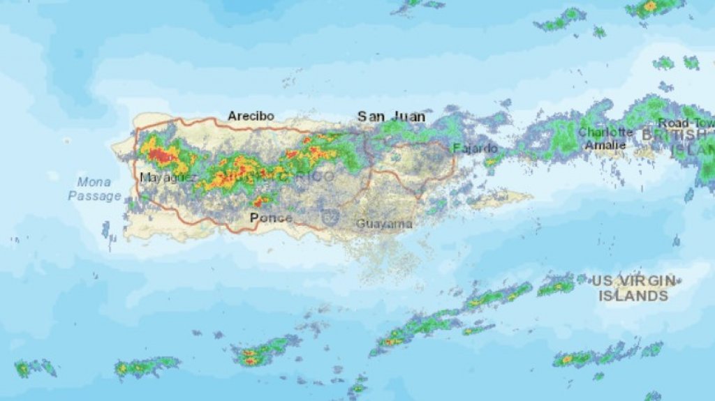 A las 12:49 del mediodía, las fuertes tronadas continuaban desarrollándose entre Utuado, Ciales y el área metropolitana de San Juan y se movían al noreste a 10 millas por hora.