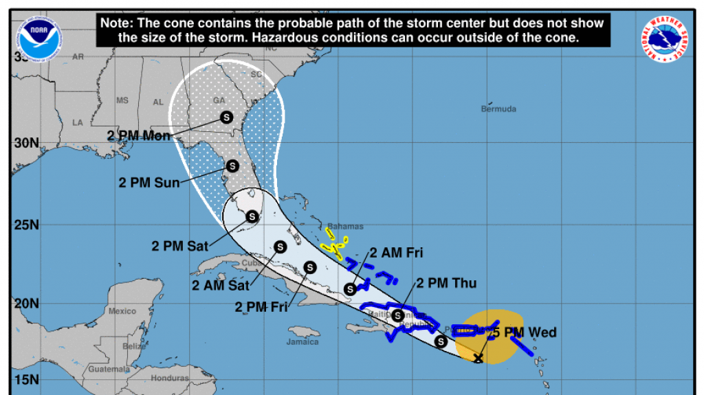 En términos de oleaje, las olas estarán altas y peligrosas, de 10 pies o más en las aguas adyacentes. Operadores de embarcaciones pequeñas deben prevalecer en puerto seguro. Además, considere problemas de erosión y de inundaciones costeras.