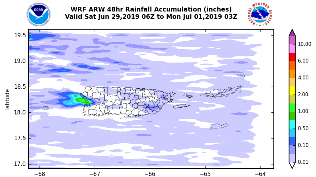 Por otro lado, las condiciones marítimas están ligeramente deterioradas. Estas presentan olas de hasta 6 pies de altura a través del archipiélago. El riesgo de corrientes submarinas es moderado a través varias playas del norte, este y sur del país, pero es bajo hacia el litoral oeste de Puerto Rico.