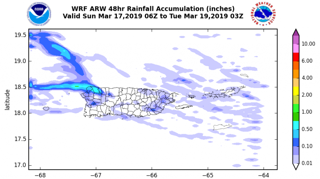 Entretanto, las condiciones marítimas presentan olas de 2 a 5 pies en el mar Caribe y de 3 a 5 pies en el Atlántico. Las playas del norte, las costas de Rincón y Culebra presentan un riesgo moderado de corrientes. El resto de las costas tienen baja peligrosidad.