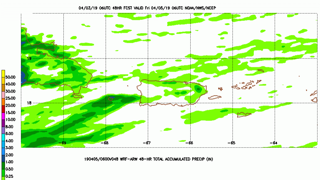 Tiempo más seco domina a través del archipiélago. Apenas algunas lloviznas llegan hacia el este y noreste del país, desplazadas por el viento. El resto de la isla disfruta de tiempo seco, aunque en la tarde tendremos el desarrollo de aguaceros a través del oeste e interior-suroeste del país. A raíz de estas precipitaciones, los modelos no vislumbran acumulaciones significativas.