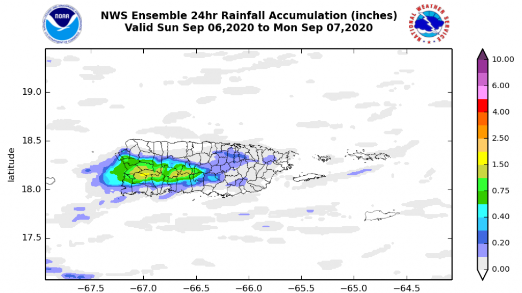 En cuanto al oleaje, tendremos olas de 2 a 5 pies a través del archipiélago. El riesgo de corrientes submarinas es moderado solo a través de la costa norte de Puerto Rico.