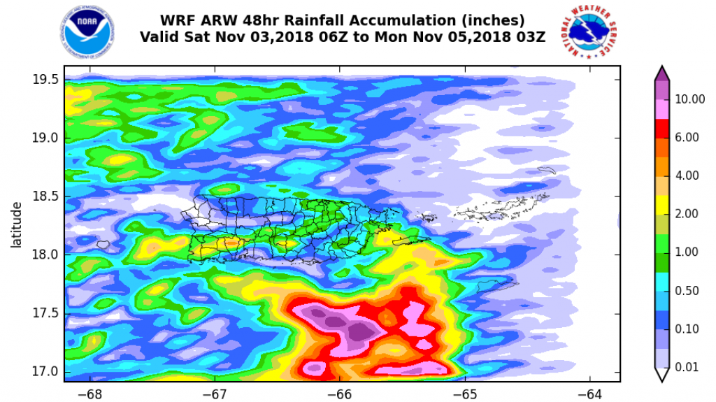 En la tarde, aguaceros y tronadas estarán desarrollándose hacia la cordillera, porciones del sur y mitad oeste del país. Tenga cautela ante el potencial de inundaciones o derrumbes, en particular hacia Utuado y vecindad.