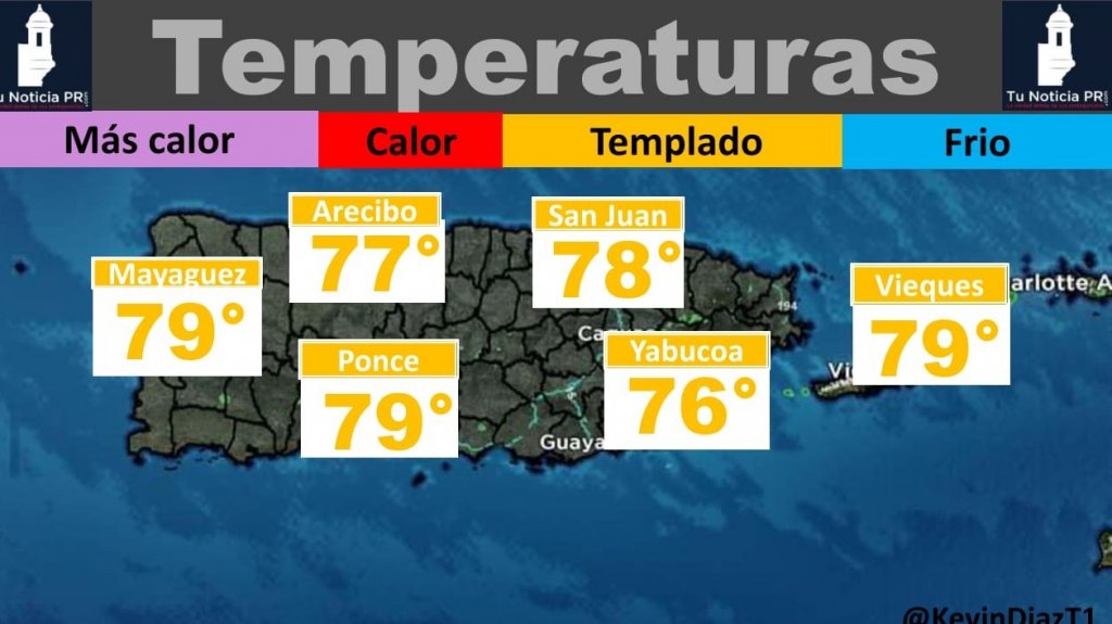 Pronosticó para Sábado y Domingo Temperaturas sobre 80s la sensación de calor en 90s la probabilidad de lluvia un 20%.