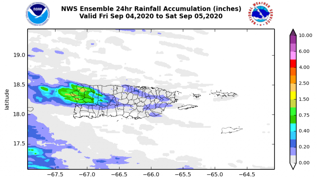 En cuanto al oleaje, tendremos olas de 3 a 5 pies a través del archipiélago. El riesgo de corrientes submarinas es moderado a través de la mayoría de las costas del norte, en Culebra y al suroeste de Puerto Rico.
