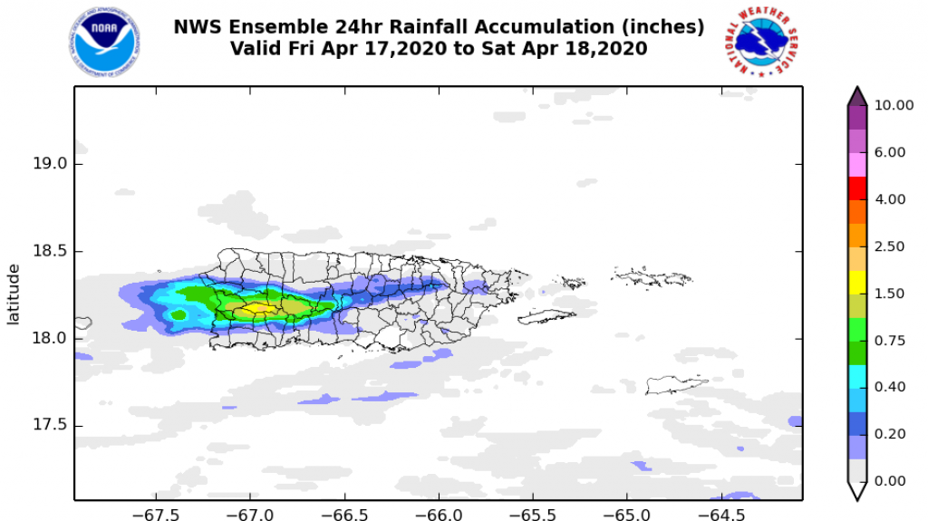Entretanto, las condiciones marítimas reportan olas de 3 a 5 pies a través del archipiélago. Hay una peligrosidad moderada de corrientes submarinas a través de la costa norte de Puerto Rico y de Culebra.