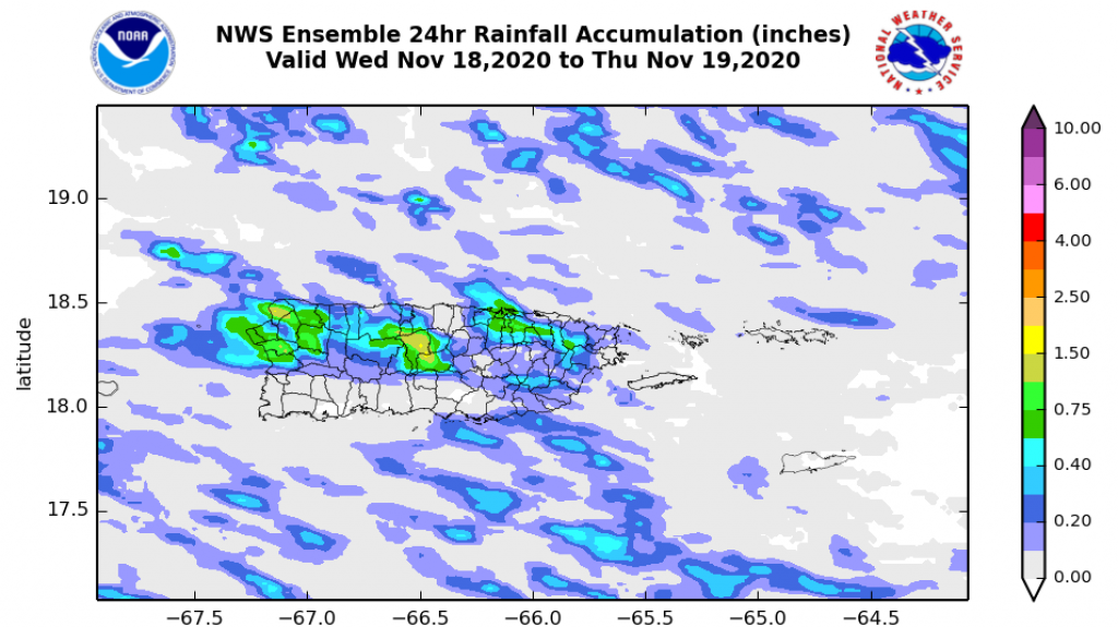 Mientras, las condiciones marítimas continúan con olas de 2 a 5 pies a través del archipiélago. Las playas del Atlántico aún tienen un riesgo moderado de corrientes submarinas, incluyendo a Culebra; también las costas entre Ponce y Cabo Rojo. Ya para el fin de semana se espera un nuevo deterioro en el oleaje.