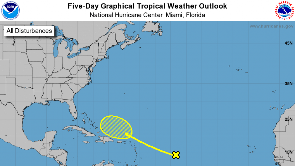 Disturbio con bajo potencial ciclónico pasará al noreste del Caribe la próxima semana