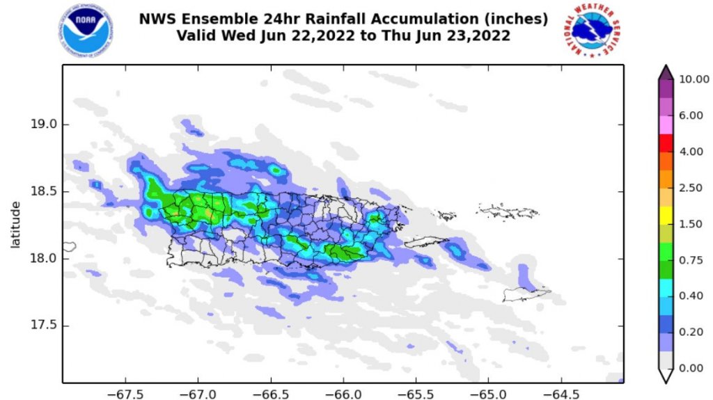 Hoy vamos a tener aguaceros en el interior-oeste en la tarde y no descartar lluvias en el este pero las acumulaciones no serán significativas. Temperaturas máximas estarán entre los 86-90°F con índices de calor sobre pasando los 100°F.