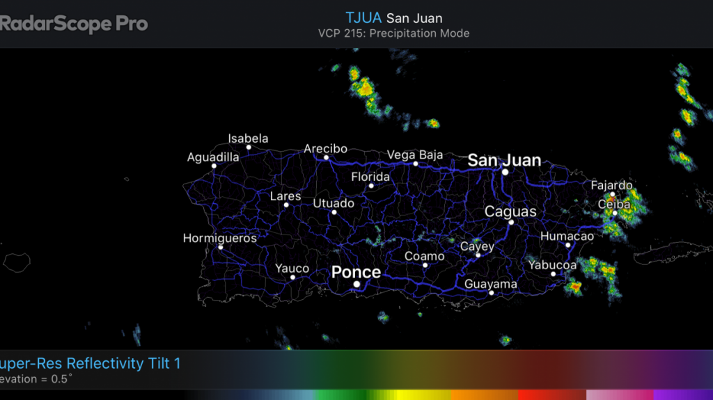 Hoy recibimos un ligero incremento en la humedad. Como resultado, lluvias pasajeras se han manifestado en las islas municipio y región este de Puerto Rico.