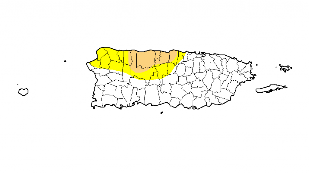 Hatillo, Arecibo, Barceloneta y Manatí se encuentran por completo bajo la categoría de sequía moderada. Bajo esa misma categoría están sectores de Camuy, Utuado, Florida y Vega Baja.