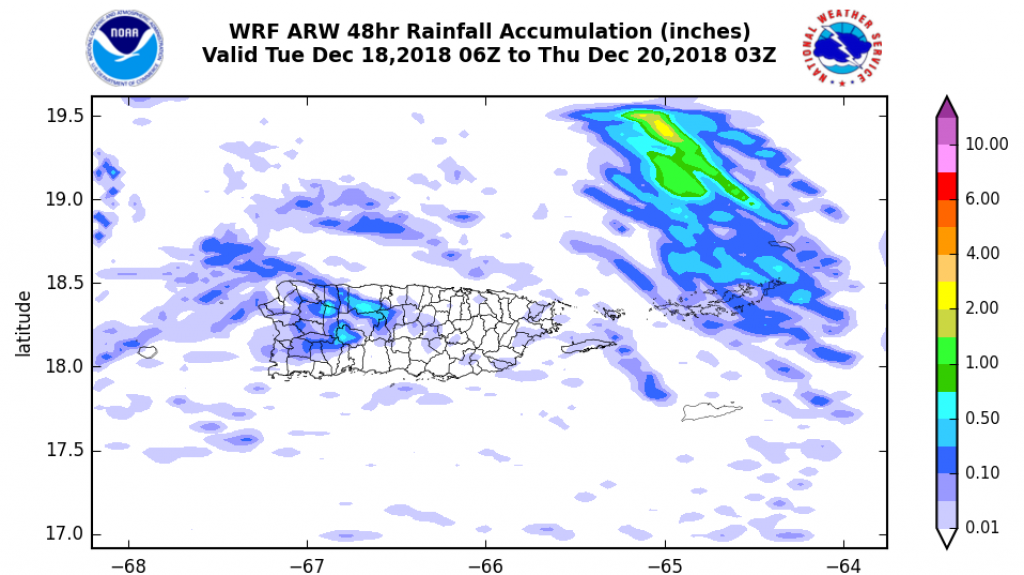 Las condiciones marítimas han mejorado, ahora con olas de 2 a 4 pies a través del Atlántico, y de 1 a 4 pies en las aguas del mar Caribe. El riesgo de corrientes submarinas es moderado a través de las costas del norte, bajo en el resto de la zona.