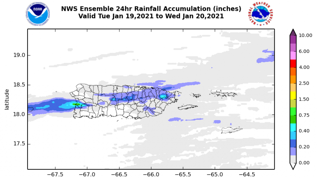 Hoy tenemos más humedad, así que las condiciones del tiempo estarán variables. Planifique en municipios del norte y este de la Isla con la entrada de lluvias pasajeras, mientras que sectores del interior-oeste y suroeste tendrán un par de aguaceros dispersos en la tarde, con poca acumulación.