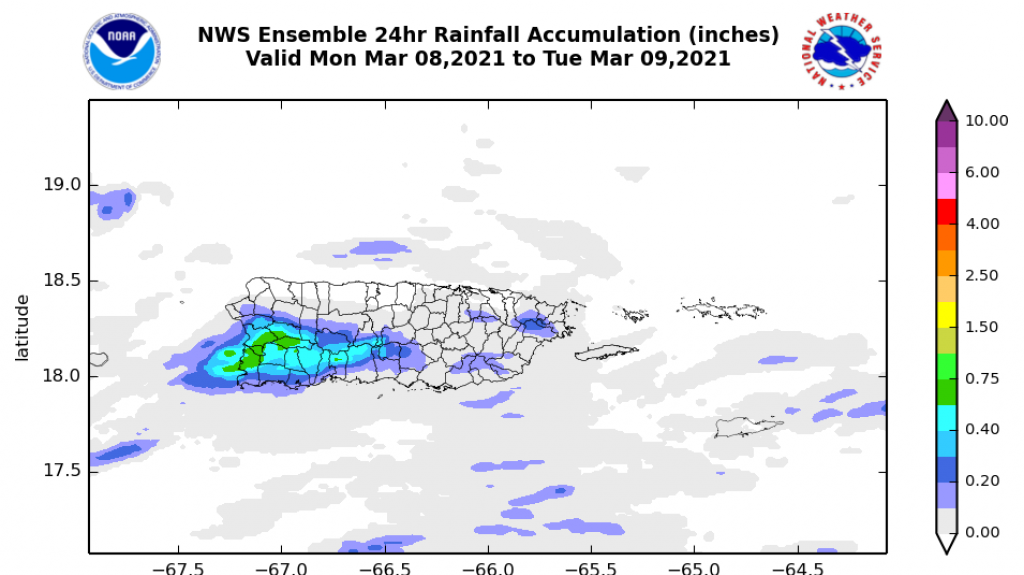 La actividad de lluvia prevalece limitada; solo se observan algunos chubascos en aguas adyacentes al noreste y sureste de la Isla. Entretanto, en la tarde tendremos lluvias dispersas en el interior-oeste y suroeste. De hecho, el potencial de lluvias aumentará gradualmente a partir de mediados de semana, cuando una vaguada inyecte inestabilidad a nuestra zona.