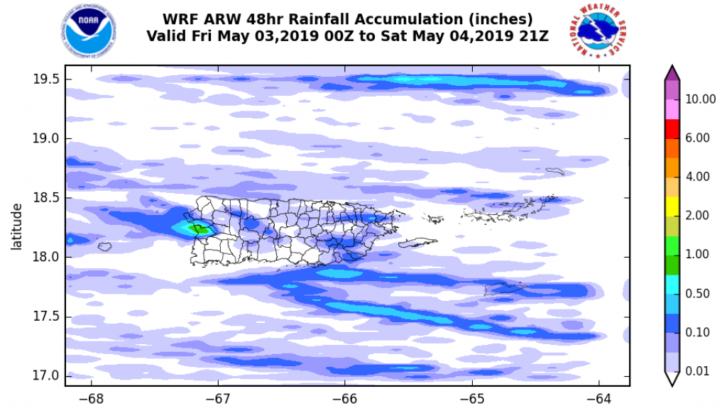 Entretanto, las condiciones marítimas reportan olas de 3 a 6 pies a través del Atlántico y de 4 a 6 pies en el Mar Caribe. Las playas a través de la costa norte y sur, en su mayoría, manifiestan un riesgo moderado de corrientes; también hacia las islas municipio de Vieques y Culebra. En el litoral oeste hay baja peligrosidad.