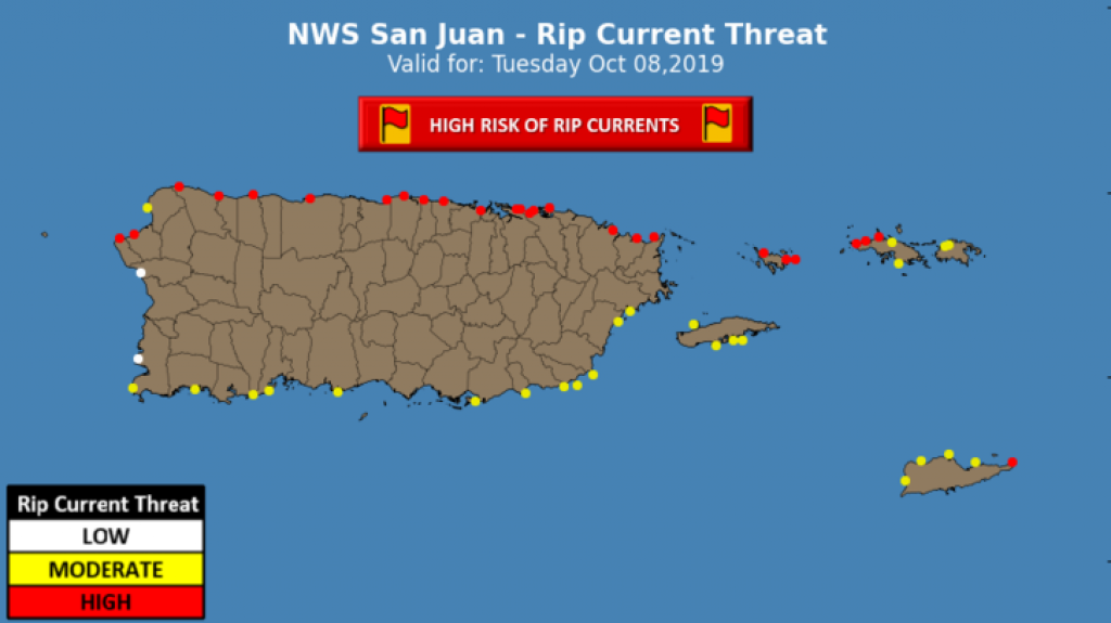 Desde mañana, otra masa de aire seco y brumoso tomará el control de nuestra región. Entretanto, el oleaje continúa manifestando un deterioro. Se reportan olas de hasta 8 pies de altura en el Atlántico y de hasta 7 pies en el Caribe, sobre todo en aguas profundas. Cabe destacar que, operadores de embarcaciones pequeñas tienen advertencia en las adyacentes, mientras que hay riesgo elevado de corrientes submarinas en la mayoría de las costas.