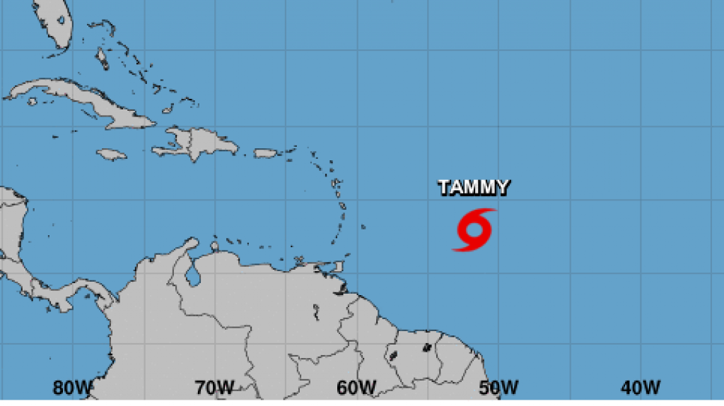 El Centro Nacional de Huracanes (CNH) en Miami, Florida, confirmó la formación de la Tormenta Tropical Tammy al este de las Islas de Barlovento el miércoles. Se han emitido alertas de tormenta tropical para Barbados, Dominica, Martinica y Guadalupe.
