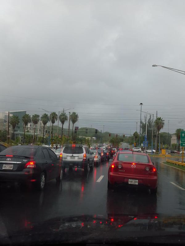 Horrible el tránsito en Manatí. Acumulación de agua y NO hay luz...