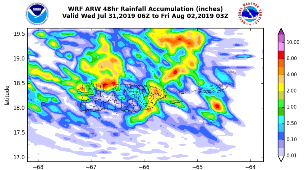 Por otro lado, las condiciones marítimas registran olas de hasta 6 pies a través del archipiélago. El riesgo de corrientes submarinas es moderado a través la mayoría de las playas del Atlántico y sureste del país; también en las islas municipio. Además, tenga cautela por la posible presencia de tronadas, sobre todo al este de las islas.