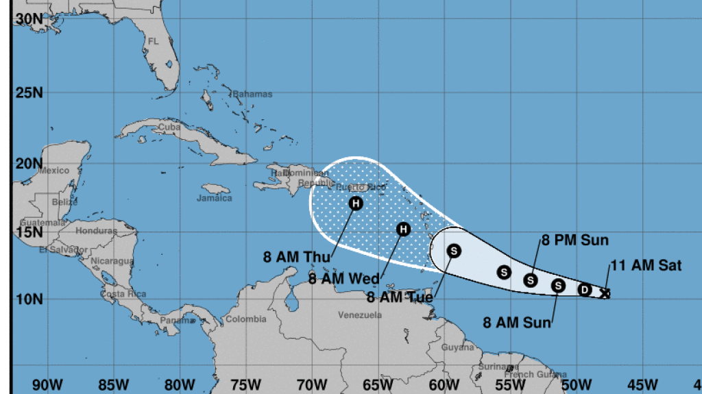 A las 11:00 am, el Centro Nacional de Huracanes clasificó al invest 99 L -que era la onda tropical con alto potencial ciclónico en medio del Atlántico- como la depresión tropical #5. Se prevé que este sistema tenga una intensificación lenta, pero continua, durante los próximos días. Esto permitirá que el fenómeno adquiera la fuerza de huracán a medio plazo, con un paso cercano a nuestro archipiélago para el jueves en la mañana.