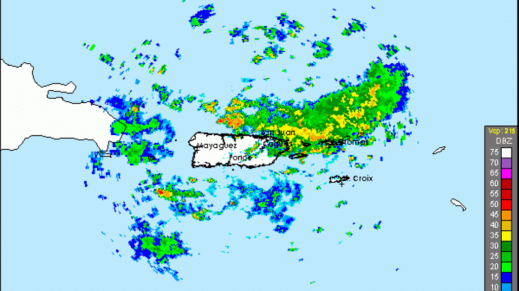A la 1:15 de la tarde el radar doppler encontró lluvia fuerte a causa de tronadas que producirá inundaciones.