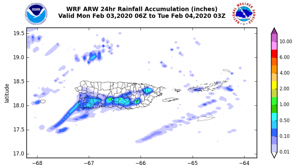 Tiempo mayormente despejado domina en la región; sin embargo, en horas de la tarde, el calor y la humedad de un frente frío darán paso a la formación de algunos aguaceros -por efectos locales- hacia el centro, sur y suroeste de la isla. Este pronóstico está basado en la cercanía gradual de un sistema frontal hacia la costa norte del país. Pese a este mayor potencial de nubosidad y lluvia, los modelos no proyectan acumulaciones significativas.