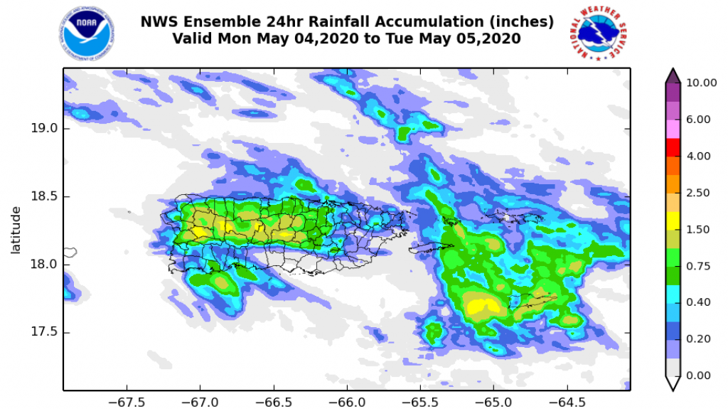 Entretanto, las condiciones marítimas reportan olas de 3 a 5 pies a través del archipiélago. Hay una peligrosidad moderada de corrientes submarinas a través de las costas del norte de Puerto Rico y en la isla de Culebra.