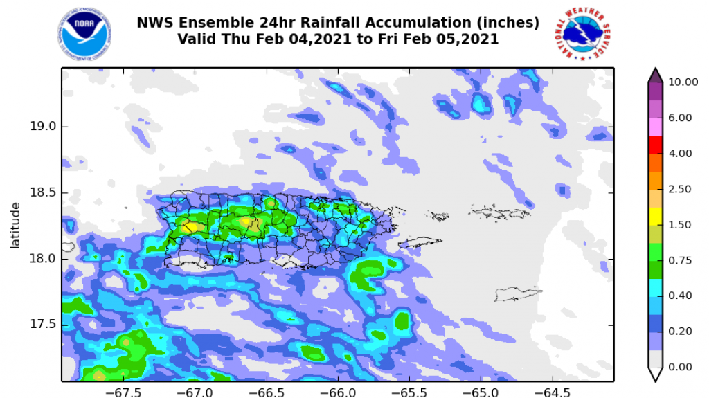 El jueves inicia mayormente despejado y fresco en gran parte del país; sin embargo, esta tarde tendremos el desarrollo de aguaceros tras la humedad de un débil frente y una vaguada. El mayor potencial será para el interior, norte y oeste de P.R., mientras que la región esté tendrá la entrada de lluvias dispersas.