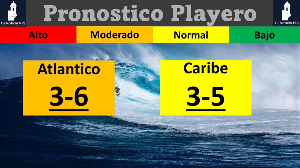 El oleaje estará moderado para playas del norte entre 3-6 pies y para el Mar Caribe estarán entre 3-5 pies las olas.