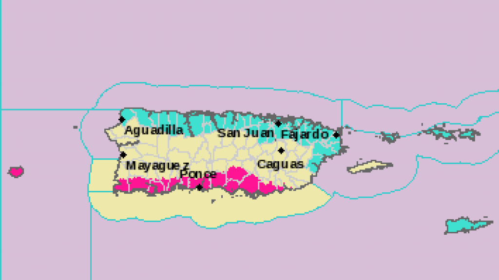 Las condiciones marítimas prevalecen deterioradas, con olas de 5 a 8 pies a través del Atlántico. En el mar Caribe las olas oscilan de 4 a 7 pies. Bañistas deben ejercer precaución a través de las aguas del norte y este de la isla, ante un riesgo elevado de corrientes submarinas. El resto de las costas, excepto el oeste, presenta un riesgo moderado de corrientes. De igual forma operadores de embarcaciones pequeñas deberán ejercer cautela.