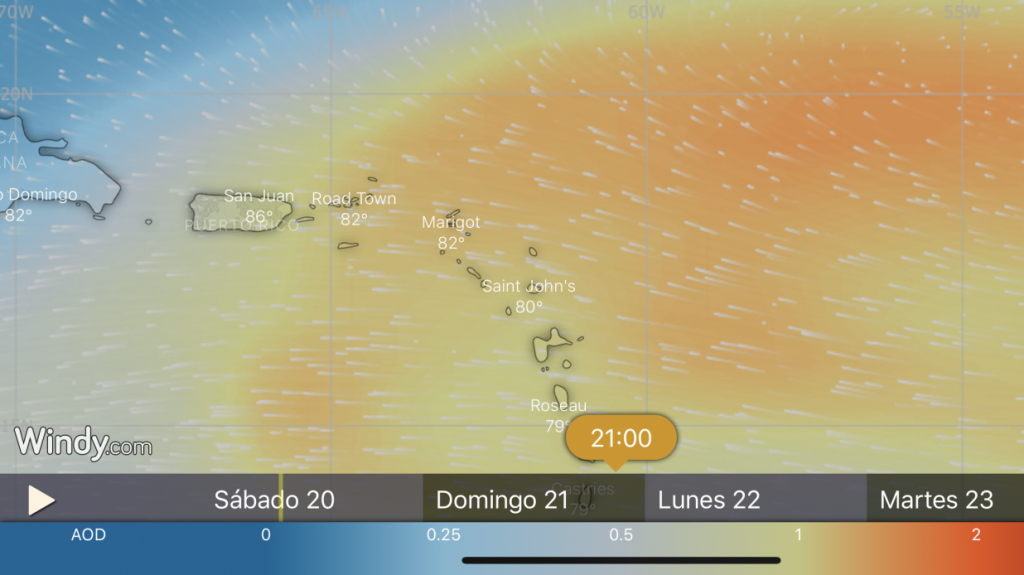 Esta humedad favorecerá el desarrollo de aguaceros y tronadas esta tarde. El mayor potencial continuará manifestándose hacia municipios del interior, oeste y noroeste (Utuado-Mayagüez-Aguadilla). Mientras, el resto del país debe prevalecer con tiempo mayormente soleado y caluroso. Los índices de calor pudieran estar en el orden de 102º a 107ºF. Entretanto, partir del domingo en la tarde (mañana) llegará otra masa de aire aún más brumosa que augura tiempo caluroso y mayormente seco.