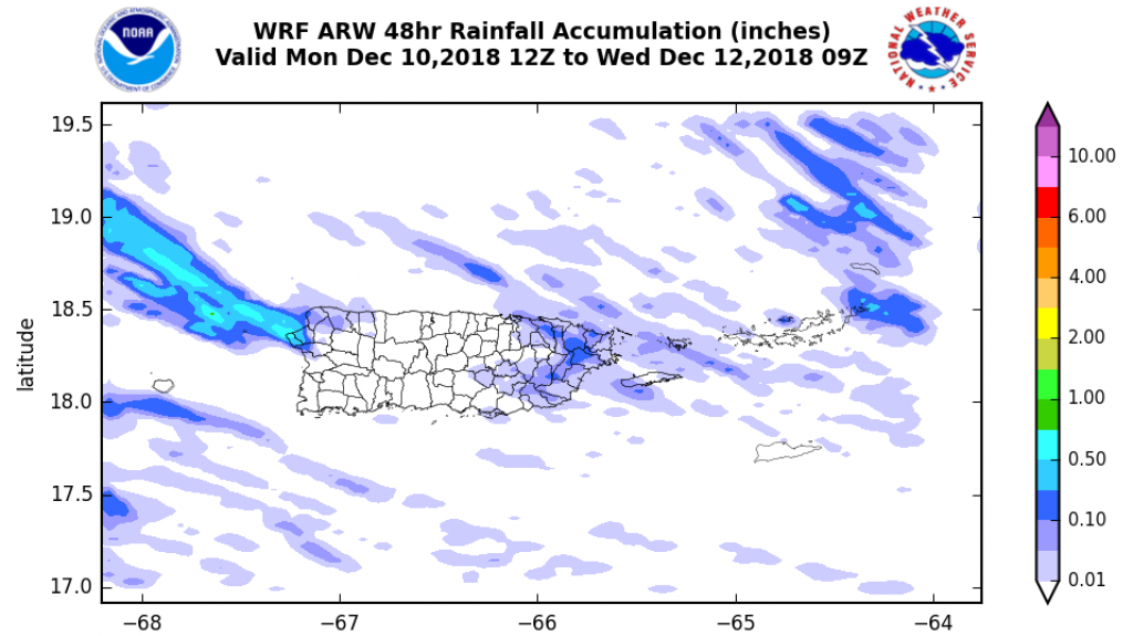 Las condiciones marítimas están ligeramente deterioradas, con olas de hasta 6 pies. Bañistas deben ejercer precaución a través de las aguas del norte y este de las islas, incluyendo a Vieques y Culebra, ante un riesgo moderado de corrientes submarinas.
