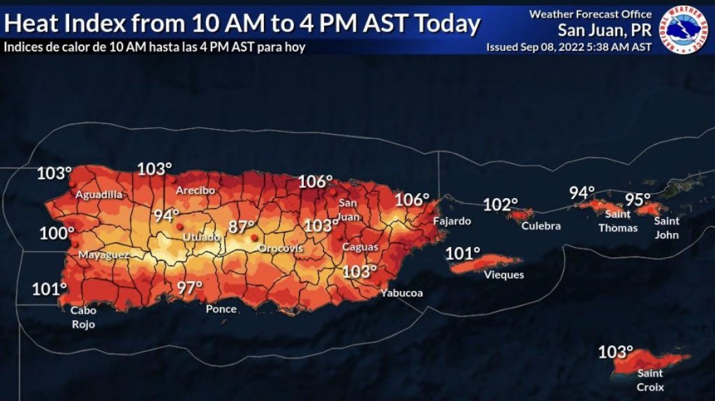Advertencia de calor para el norte de Puerto Rico. Aguaceros y tronadas pudieran resultar en inundaciones esta tarde.