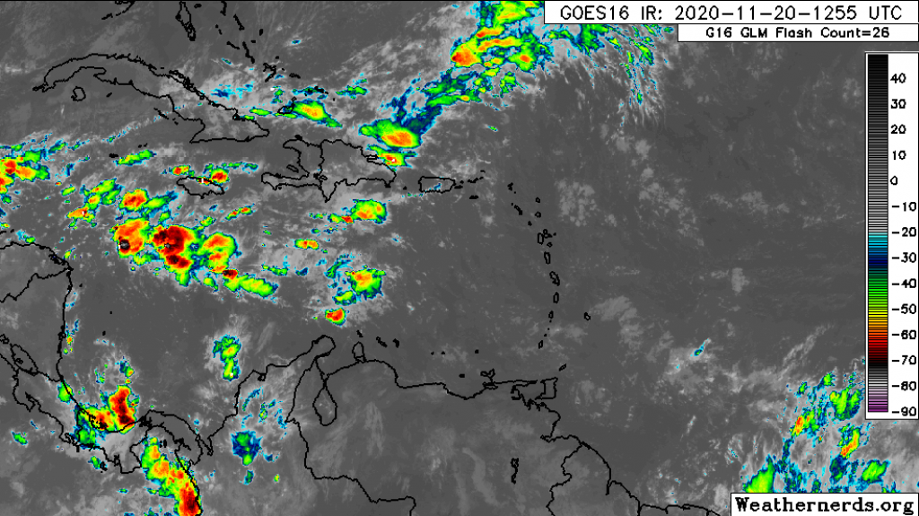 En el trópico, hay un sistema con bajo potencial ciclónico en el Atlántico, sin amenaza directa a territorio.