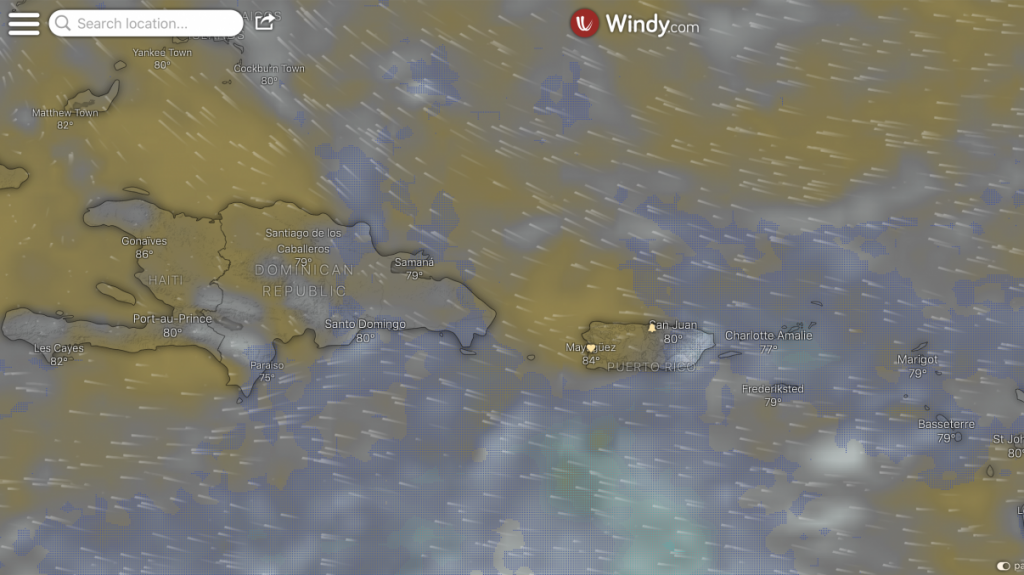 Tiempo variable prevalece dominando a través de nuestra zona. El viento sigue soplando moderadamente fuerte y continúa arrastrando consigo algunos grupos nubosos. Estos llegan y producen precipitaciones intermitentes hacia el este (incluyendo a islas municipio), sectores de la mitad norte de la isla y hacia el sur de P.R.