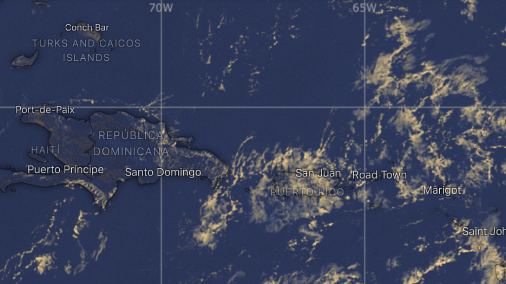 A diferencia de ayer sábado, tiempo bastante nublado se manifiesta en gran parte de la isla. Este patrón surge gracias a la entrada de humedad, arrastrada por el viento. Por esta razón, lluvias dispersas continuarán manifestándose hacia la mitad este, interior y sectores del norte de la isla.