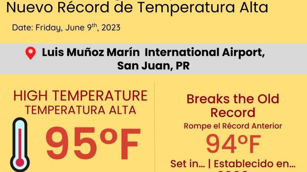 Este viernes, San Juan registró una temperatura máxima de 95 grados, rompiendo el récord previo para esta misma fecha establecido en 2006.