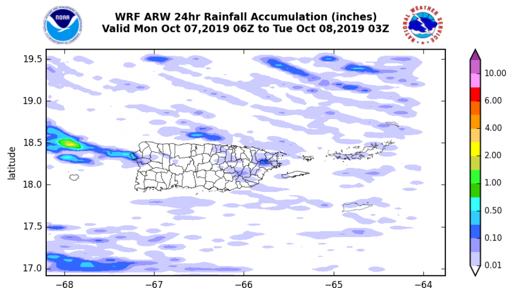 Entretanto, el oleaje ha registrado un deterioro. Se reportan olas de hasta 8 pies de altura en el Atlántico y de hasta 6 pies en el Caribe, sobre todo en aguas profundas. Aun así, solo la costa norte y la isla municipio de Culebra presentan un riesgo moderado de corrientes submarinas. El resto de las costas manifiesta un bajo riesgo de corrientes. Cabe destacar que, operadores de embarcaciones pequeñas tienen advertencia en las aguas al norte de las islas.